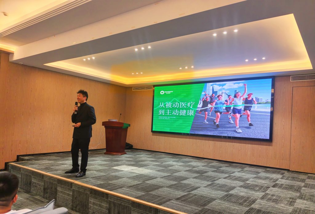 在健康管理專題培訓中,北京貝易壽科技有限公司卜振軍總監作《從被動醫療到主動健康》主題分享,系統闡述輪轉代謝、膳食調理等專業體系??偨浝碇苊?、董事長高睿?,F場參與研討,共同探索健康管理領域合作新路徑。